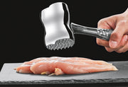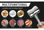Edelstahl, glatte, flache Seite zum Klopfen und Abflachen von Koteletts, strukturierte Seite zum Zartmachen von Steaks oder anderen Fleischsorten, gleichmäßig verteilte Kraft beim Klopfen, spülmaschinenfest (LxBxH): 29x8,5x5,5 cm