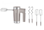 Leistungsstarker Motor für extralanges Arbeiten auch bei festem Teig, Extra Power dank Turbo-Taste, Auch für tiefe Schüsseln: extralange Knet- & Rührhaken, 600 W Gleichstrommotor mit hohem Drehmoment & Überlastungsschutz, Kneten von festem Teig bis zu 10 Min. möglich, 7 Geschwindigkeitsstufen, Maximale Bewegungsfreiheit durch extra langes Kabel (1,65m), Einfache Entnahme der Rührelemente dank Auswurftaste, Drehzahl Min./Max.: 300/1080 (U/min)·taupe (HxBxT): 157x85x209 mm