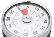 Edelstahl / Kunststoff / Acryl, minutengenau von 0 bis 60 Minuten, Restlaufzeit wird durch auffälliges rot angezeigt, Rückseite mit Magnet·silber / schwarz Ø 8 cm, H 3,2 cm
