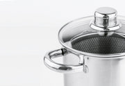 Edelstahl rostfrei, mit Glasdeckel und Drahteinsatz, Topfboden: 2 mm Alu + Induktion 0,4 mm Bodenschutz, geeignet für alle Herdarten, spülmaschinenfest 4 l, Ø 16 cm, H 21 cm