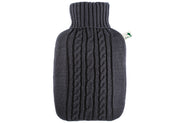 Die Wärmflasche steckt in einem hochwertigen Strickbezug mit Zopfmuster, Bezug bei 30 Grad waschbar, 100 % Polyester, Lamellenstruktur beidseitig, mit XL-Haltelasche zum sicheren Befüllen, Thermoplast, 2 Jahre Garantie auf Dichtigkeit·dunkelgrau 1,8 l, (LxB): ca. 25x19,5 cm