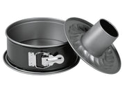 Stahl, Inhalt: 1x Flachboden, 1 x Rohrboden, keramische Antihaftbeschichtung, backofenfest, auslaufsicher, hitzebeständig bis 230°C, gleichmäßige Bräunung, leichtes Lösen, leichte Reinigung, einfaches Verschließen, mit Rezeptheft, im Geschenkkarton· Ø 20 cm, H 8 cm·