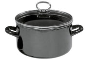 Emaille / Edelstahl / Glas, , Materialstärke 1,5 mm, schweres Geschirr, Bodendekor in weiß, innen: Diamant-Glasur, Glasdeckel mit Edelstahlrand und Dampfaustrittsöffnung, emaillierte Hohlgriffe, Bügelgriff am Glasdeckel aus Edelstahl, für alle Herdarten g·schwarz Ø 24 cm