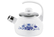 KARL KRÜGER Flötenkessel Zwiebelmuster emailliert 18cm Ø21cm weiß blau
