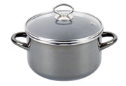 Stahlemaille, Diamant-Glasur-Clean, praktischer, gerundeter Rührboden, Klarsicht-Glasdeckel, hitzebeständig und bruchsicher, Vollkontakt-Thermoboden, Sichtkochen spart Energie und schont Vitamine, leicht zu reinigen, Antihaft-Eigenschaft, ideal für Allergiker, für alle Herdarten inkl. Induktion geeignet·schwarz metallic 6,3 l, Ø 24 cm