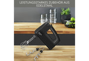 500 W Motor: bis zu 1kg Brotteig kneten, ergonomischer Griff, stufenlose Geschwindigkeitsregulierung mit langsamem Start, Turbofunktion für die schnellste Geschwindigkeit in kürzester Zeit, Auswurftaste für eine einfache Reinigung des Zubehörs, längeres Kabel (1,65m) vs Standardmodell, Schneebesen aus Edelstahl, Knethaken aus Edelstahl, inklusive einer praktischen Tasche für das Zubehör