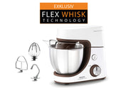 Planetarisches Rührsystem, Pulsfunktion, Gesamtvolumen Rührschüssel: 4,6 L, für bis zu 0,8 kg Brotteig und 1,8 kg Kuchenteig, Rührbesen, Knethaken, Flex-Whisk-Schneebesen, Rezeptbuch, Kabelaufbewahrung, Leistung: 1100 Watt, Schukostecker CEE 7/7