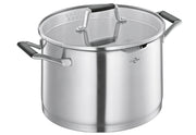 Edelstahl rostfrei / Glas, Topf mit praktischem Ausgießer, extra starker Mehrschichtboden, Deckel aus Sicherheitsglas, inkl. feinem und, grobem Sieb, wärmeisolierende, silikonummantelte Griffe, mit praktischer Innenskala, für alle Herdarten inkl. Induktion geeignet 6,7 l, H 14,5 cm, Ø 24 cm·Fachhandel exklusiv
