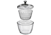 Borosilikatglas / hochwertiger Kunststoff, Inhalt: Glasschüssel, Korb, Basisplatte und Deckel mit Kurbel, mit praktischer Öffnung zum Einfüllen und Abgießen 4,0 l, Ø 24,5 cm, H 22 cm·Fachhandel exklusiv