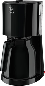 Fassungsvermögen: 8 Tassen, Thermokanne mit Einhandbedienung und Durchbrühdeckel, Aroma-Selector, herausnehmbarer Filtereinsatz, Tropfstopp, transparenter Wasserbehälter, außenliegende Wasserstandsanzeige, beleuchteter Ein- / Ausschalter, Brühtemperatur: 93° C, passende Melitta Filtertüten Größe 1 x 4, automatische Endabschaltung nach 40 Minuten, 1000 Watt, Schukostecker CEE 7/7·schwarz