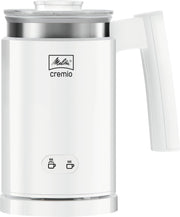 einfache Zubereitung von warmem und kaltem Milchschaum, leichte Handhabung, antihaftbeschichteter Behälter mit hochglänzendem Kunststoff-Gehäuse, beleuchtete Bedientasten, Zubereitung von warmem Kakao in einem Arbeitsgang möglich, Milchschaumzubereitung auch mit Soja- oder laktosefreier Milch möglich, gründliche Reinigung, z. B. mit dem Milchsystem-Reiniger Perfect Clean von Melitta, Füllmenge für Milchschaum: 100 - 150 ml, Füllmenge für warme Milch: 100 - 250 ml, Abschaltautomatik, Lift-Switch-Off: Gerät schaltet ab, sobald es von der Station genommen wird, 360° Basisstation mit gummierten Füßen, kabelloser Behälter, Kabelfach, Leistungsaufnahme im Stand-By-Betrieb: <1 Watt, 450 Watt, Schukostecker CEE 7/7·weiß