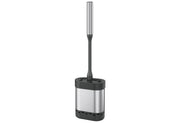 Kunststoff (PP / TPR), flache und biegsame WC-Bürste für eine gründliche Reinigung selbst an schwer zugänglichen Stellen, an den elastischen Borsten bleiben weder Toilettenpapier noch Schmutz hängen, Belüftungsöffnungen halten den Behälter samt Bürste trocken und geruchsfrei, Behälter zur Reinigung und Desinfektion vollständig zerlegbar, hängend oder stehend verwendbar, inkl. Montagematerial zum Ankleben (3M Kleber – extra stabil) oder Anschrauben·schwarz / Edelstahl (LxBxH): 47,5x7,5x13 cm