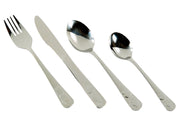 Edelstahl rostfrei, Inhalt: 1 x Messer 16,5 cm, 1 x Gabel 15 cm, 1 x Teelöffel 13 cm, 1 x Löffel 14,5 cm