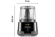 Fünf Funktionen in einem: zum Hacken, Schneiden, Mixen, Mahlen und Pürieren, Hohes Fassungsvermögen: bis zu 350 g / 550 ml, wasserdichter Deckel für halbflüssige Zutaten, Leistung 1000 Watt