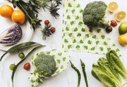 organische Baumwolle / Bienenwachs / Kokos Öl / Baumharz, Inhalt: je 1 x Dekor "Zwiebel", (LxB): 13x13 cm, Dekor "Zitrone", (LxB): 13x13 cm, Dekor "Brokkoli", (LxB): 18x20 cm, Dekor "Brot", (LxB): 33x35,5 cm, wiederverwendbar (bis zu einem Jahr), biologisch abbaubar und nachhaltig, perfekt um Brote, Gebäck, Gemüse, Früchte, Käse, Beeren und Reste einzupacken, nicht geeignet für rohes Fleisch und rohen Fisch, zum Reinigen einfach mit handwarmem (max. 40° C) Wasser abspülen