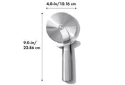 Edelstahl, das große 10 cm-Edelstahlrad schneidet zuverlässig durch dicke und dünne Krusten, schneidet auch Pizza mit dickem Teigmantel, der Edelstahlschutz schützt die Hand beim Schneiden vor der Klinge, spülmaschinenfest (LxB): 22,86x10,16 cm