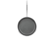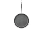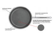 5-Lagen Mehrschichtmaterial Außenschicht aus, induktionstauglichem Edelstahl 18/0, innen, Edelstahlschicht 18/10 und dreifachem, Aluminiumkern. 2-fach Antihaftbeschichtung auf, mineralischer Basis für höchste Abriebfestigkeit, und optimierten Antihafteffekt für lange, Lebensdauer. PFAS-frei., Erhabene Wabenstruktur aus Edelstahl. Geeignet, für Pfannenwender aus Metall., Optimale Wärmeverteilung., Geeignet für sämtliche Herdarten inklusive, Induktion. Backofenfest., Geschlossener Topf- und Schüttrand., Ø 32 cm / Höhe: 4,5 cm H 4,5 cm, Ø 32 cm·Fachhandel exklusiv