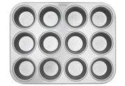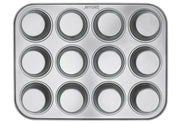 Zwölf ganze Muffins oder Cupcakes können mit dieser Backform auf einmal gebacken werden, sehr hochwertige und langlebige Beschichtung, Backform mit heißem Wasser, mildem Spülmittel und einem Tuch reinigen, keine Kratz- oder Reinigungsschwämme und keine Kratz- oder Scheuermittel verwenden, nicht in der Spülmaschine reinigen, temperaturbeständig bis 250 °C, PFAS frei·silberfarben matt