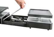 Das UNOLD Raclette Extendable ist ein ausziehbares Raclette-Gerät und somit die perfekte Wahl für gesellige Mahlzeiten, egal ob in kleiner oder großer Runde mit bis zu 8 Personen. Durch die Auszieh-Funktion lässt es sich mühelos an kleinere und größere Tische anpassen, was es besonders flexibel macht. Trotz seines kompakten Designs bietet es zudem ein praktisches Fach zur Aufbewahrung der Raclette-Pfännchen.