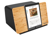 Kunststoff (PVC/PU), mit Bambusbrett als Deckel, gewährleistet eine dunkle Lagerung ist auch als Schneidebrett zu nutzen, vor dem Schneidebrett lässt sich optimal ein Tablet oder ein Smartphone anlehnen um z.B. Kochrezepte im Blick zu haben, der Kasten hat zwei Ebenen im Inneren, Belüftungslöcher auf der Rückseite sorgen für eine optimale Luftzirkulation·schwarz (LxBxH): 37x27x23 cm