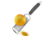 hochwertiger Edelstahl, fein, professionelle Ätztechnik, außergewöhnlich scharfe und langlebige Klinge, rutschfestes Gummi, Klingenschutz, Reibe fein u. a. für: Orangen, Zitronen, Zimt, Chili, Knoblauch, Ingwer, Muskatnüsse, Reibe grob u. a. für: Käse, Kartoffeln.· (LxBxH): 32,5x6,5x2,8 cm