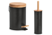 ZELLER PRESENT Kosmetikeimer soft-close 3l Ø16,8x24cm Metall/Bambus schwarz