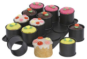 12 zylindrische Rund-Backförmen Ø 8,5 cm und 7,5 cm Höhe, antihaftbeschichtet, zum Backen von kleinen Törtchen· (LxB): 38x30 cm