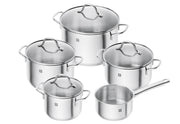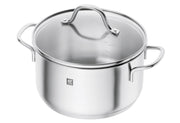 Edelstahl 18/10, Inhalt: 1x Stieltopf Ø 16 cm 1,5 l), je 1 x Kochtopf mit Deckel Ø 16 cm (2 l), 20 cm (3,5 l) und 24 cm (6 l), 1 x Bratentopf mit Deckel Ø 20 cm (3 l), SIGMA Classic+ Sandwichboden, Aluminiumkern, ideale Wärmeverteilung, integrierte Ausgießfunktion im Glasdeckel, für alle Herdarten geeignet, inkl. Induktion, spülmaschinengeeignet