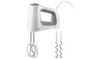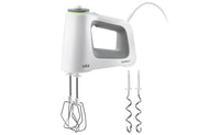 9 Geschwindigkeitsstufen, Turbo-Funktion, Soft-Griff Plus, Flexibler Kabelauslass, stufenlose Geschwindigkeits-regelung am Drehrad, Kabellänge 155 cm, 2 x Edelstahl Knethaken, 2 x Edelstahl Schneebesen, Leistung: 750 W, Konturenstecker CEE 7/17·weiß/grau