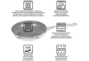 Die professionelle Konstruktion der Bratpfanne sorgt für eine optimale Wärmeverteilung, wodurch das Anbraten und Garen Ihrer Lebensmittel gleichmäßiger erfolgt. Sparen Sie Zeit und Energie, während Sie gleichzeitig Ihre Kochkünste perfektionieren. Die Pfanne ist für alle Herdarten geeignet, einschließlich Induktion, und eignet sich außerdem für den Einsatz im Backofen bis 180°C.