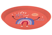 bio-zirkuläres Material + Holz, Inhalt: 1 x Becher 190 ml, 1 x Schale 400 ml, 1 x Teller Ø 20,5 cm, robust, leicht und stapelbar, lebensmittelecht, mikrowellengeeignet max. 360 W / max. 100°C, 100% recycelbar, 100% CO2-neutral, 100% reines Material, melaminfrei, spülmaschinengeeignet··organic red