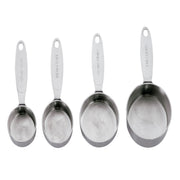 Das glatte ovale Design mit langen Griffen reicht bequem in jedes größere Gewürzglas oder in große Behälter. Jedes ineinander setzbare Becherset enthält einen praktischen Aufbewahrungsclip, um es zusammenzuhalten. Die dicken, flachen Ränder machen es einfach, die Becher mit einem Messer abzustreifen.