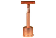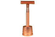 Messing / Zinklegierung / Edelstahl (Klingen) / Aluminium (Gestell), Naßrasierer, Inhalt: Rasierhobel inkl. Halterung aus Metall, 10 Klingen und gratis eBook mit Anleitung und Tipps, für Männer und Frauen, geschlossener Kamm·roségold