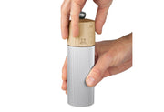 Aluminium / Buchenholz, Drehknopf auf der Oberseite ermöglicht eine simple Einstellung des Mahlgrads, je stärker dieser angezogen wird, desto feiner der Pfeffer (und umgekehrt), zum Mahlen von schwarzem, weißem, grünem oder rotem Pfeffer, rosa Beeren (maximal 15 % in einer Pfeffermischung) oder Koriandersamen - Gebrauchsfertig: Pfefferkörner liegen bei, eignet sich perfekt für den Einsatz zu Tisch·natur Ø 5,2 cm, H 18 cm·Fachhandel exklusiv