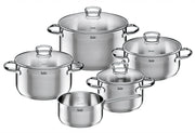 Inhalt: 1 x Bratentopf Ø 20 cm, je 1 x Fleischtopf Ø 16, 20, 24 cm, 1 x Stielkasserole ohne Deckel Ø 16 cm, SiliTherm®-Allherdboden, Sichtkochdeckel aus hochwertigem hitzebeständigem Güteglas mit Edelstahleinfassung zum wasserarmen, energiesparenden Kochen, backofenfeste, ergonomisch geformte Ganzmetallgriffe, ausgestellter Schüttrand für problemloses Ausgießen, für alle Herdarten inkl. Induktion geeignet