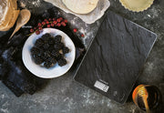5 kg Tragkraft, umschaltbar zwischen g und oz / lb, gut lesbarer LCD-Display (1,2 cm Ziffernhöhe), Zuwiegefunktion (Tara), Sensor Touch, platzsparend, Aufhängevorrichtung, Batterie inklusive 1 x 3 V CR2430, rutschhemmende Füße, automatische Abschaltfunktion, Batteriefach kindersicher und verschraubt, Schiefer-Naturoptik·slate (LxBxH): 20x15x1,3 cm
