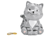 Spardose Katze Keramik 12x16x10cm grau