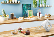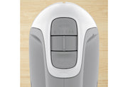 ergonomischer Griff mit strukturierter Oberfläche, 5 Geschwindigkeiten, inkl. Turbotaste, Zubehör: 2 Schneebesen, 2 Knethaken aus Edelstahl, Zubehör ist spülmaschinenfest, Leistung 450 W, Gewicht 1,13 kg, Konturenstecker CEE 7/17·pfeffer (LxBxH): 18,4x7,3x13,1 cm