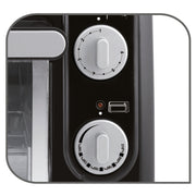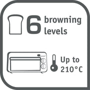 Kompaktes 2-in1-Gerät: Toaster und Mini-Ofen, sehr energieeffizient und schnell - ohne Vorheizen, Toaster: 6 Bräunungsstufen, 1 extra breiter, langer Toastschlitz, durch Abdeckhaube verschließbar (für Ofenfunktion), Sicherheitsabschaltung bei Verklemmen einer Brotscheibe, Ofen: Grilltemperaturregelung (210°C) im Minibackofen, Backblech und Rost, sehr energieeffizientes und schnelles Garen, Überbacken, Aufbacken, Erwärmen dank verschließbarem, kleinem Garraum (Glasklappe mit Griff). Extra kurze Garzeit, kein Vorheizen notwendig, Temperaturkontrollleuchte, integriertem Deckel, inkl. Backblech und Rost, herausnehmbare Krümelschublade, hochwertige Quarzheizelemente (2 oben, 2 unten) für gleichmäßiges Toasten und Grillen, wärmeisoliertes Gehäuse mit Aluminiummantelung, Front- und Rückseite aus Edelstahl, 1300 W·schwarz / alu matt Ofen: (HxBxT): 14x27x16 cm