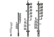 Metall lackiert, Hauswandthermometer mit freistehenden Gradzahlen, Messbereich -30 °C bis +50 °C, eine 2-Punkt-Justierung macht es besonders genau, Kapillaren mit einer speziell eingefärbten Thermometerflüssigkeit gefüllt, zum Hängen, inklusive Befestigungsmaterial·schwarz (LxBxH): 10x2,7x41 cm