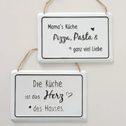 Tolles 2er Set Eisenschilder, Modell MAMA'S KÜCHE.., Material Eisen weiß lackiert , Maße je 21 x 14 cm, gestanzt, sehr hochwertig, ideal als Geschenk oder einfach Zuhause