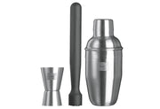 Inhalt: Cocktail Shaker, doppeler Jigger, Muddler·silber Cocktail Shaker (350 ml), doppelter Jigger (15-30 ml)