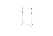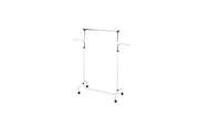 lackiert, höhenverstellbar von 118 cm bis 190 cm, mit 4 stabilen Lenkrollen, verchromte Kleiderstange 100 cm lang, mit 2 Seitenhaken, Tragkraft bis 20 kg· (HxT): 160x45 cm