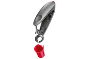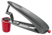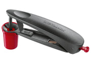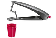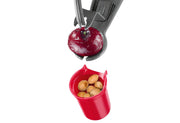 Aluminium / Kunststoff, modernes ergonomisches Design, robuster sternförmiger Entkernstößel, abnehmbarer Auffangbehälter, entkernt Kirschen auch mit Stiel, platzsparend dank Scharniersperre, spülmaschinengeeignet·anthrazit / rot (LxBxH): 15,5x3,2x4,3 cm