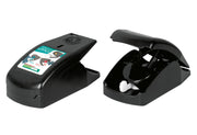 Kunststoff, einfach aufzustellen, mit Sicherheitsvorrichtung, kontaktlose Entleerung der Falle, wiederverwendbar, problemlos zu reinigen, als Köder kann Schokocreme oder Erdnussbutter benutzt werden. Achtung! Weiße Schutzkappe nur bei gedrücktem "Punkt" vorsichtig entfernen.·schwarz (LxBxH):8x3x3 cm