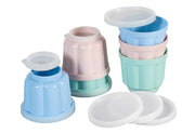 Kunststoff, mit großem Deckel für Aromaschutz, der kleine Deckel löst das Vakuum beim Stürzen, spülmaschinengeeignet· je Ø 8, H 6,5 cm, 150 ml