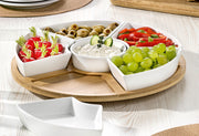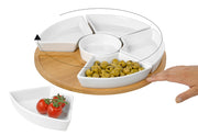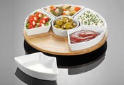 Bambus / Porzellan, drehbar, Vertiefungen in der Bambusplatte verhindern ein Verrutschen der Porzellanschälchen·natur / weiß Ø 34,5 cm, H 6 cm