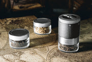 Stahl / Glas / PEFC-zerfiziertes Holz, Stahlmahlwerk, austauschbare Behälter aus Glas, präzise Mahlgradeinstellung durch patentiertes U-Select-System, 3 erlesene Pfeffersorten, 1 Rezeptbuch, 1 Stift·graphit Pfeffermühle: L 11 cm·Fachhandel exklusiv