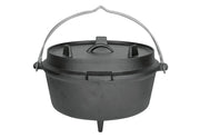 Gusseisen / Metall / Eschenholz, mit 3 Füßen, inklusive Deckelheber, ein Dutch Oven ist ein traditioneller, dickwandiger Kochtopf aus Gusseisen, der seit vielen Jahrhunderten verwendet wird, dank des Materials wird die Wärme gleichmäßig über den gesamten Topf verteilt und erwärmt so die Speisen von allen Seiten, Kohle oder Briketts können zusätzlich noch auf dem Deckel platziert werden, um so noch extra Wärme von oben zu erzeugen, durch das Umdrehen des Deckels kann dieser auch als zweite Pfanne verwendet werden, in der umgedrehten Version verfügt der Deckel über einen geriffelten Boden, dank der drei Füße steht der Dutch Oven sicher in und über dem Feuer, alternativ kann er auch an den zwei Henkeln über das Feuer gehängt werden, die jeweils eine Kerbe für einen Haken haben, mit dem mitgelieferten Deckelheber, lässt sich der heiße Deckel problemlos anheben