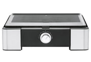 Cromargan®, leistungsstarke 2.300 Watt, antihaftbeschichtete und spülmaschinenfeste Aluminium Gussplatte mit integriertem Heizelement, große gerippte und flache Grillfäche: ca. 27 cm x 41 cm, Easy Handling: Auf Knopfdruck einfaches Entnehmen und Einsetzen der Grillplatte, herausnehmbare Auffangschale, Schukostecker CEE 7/7